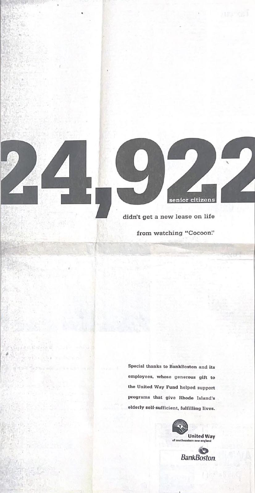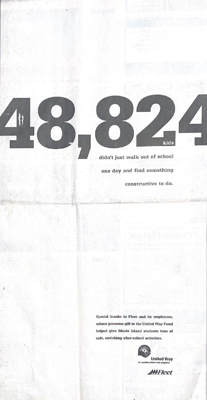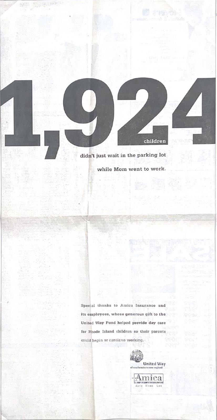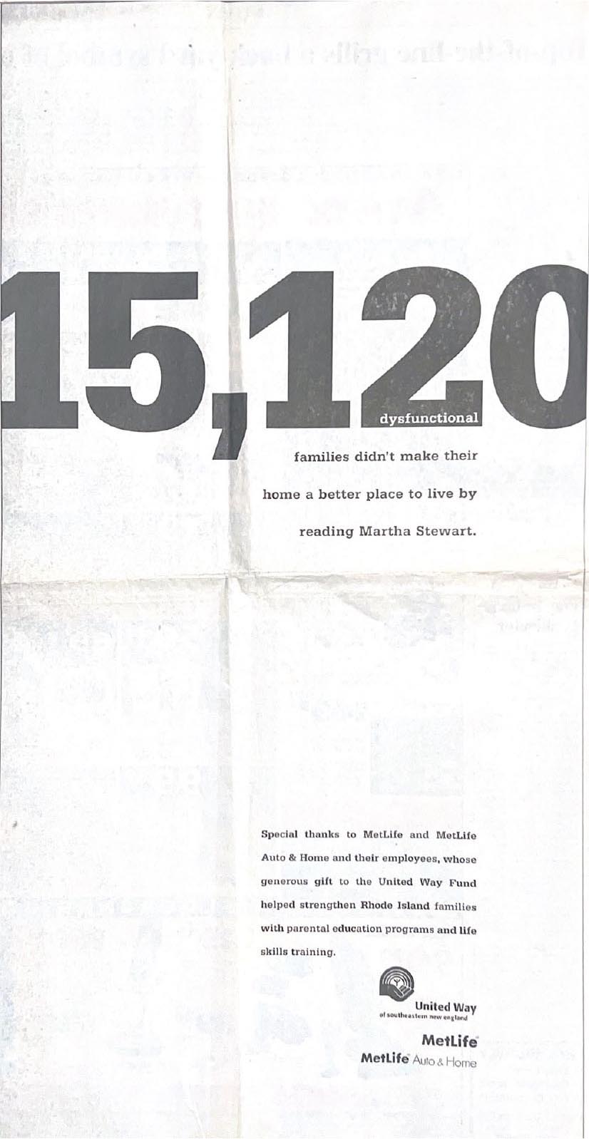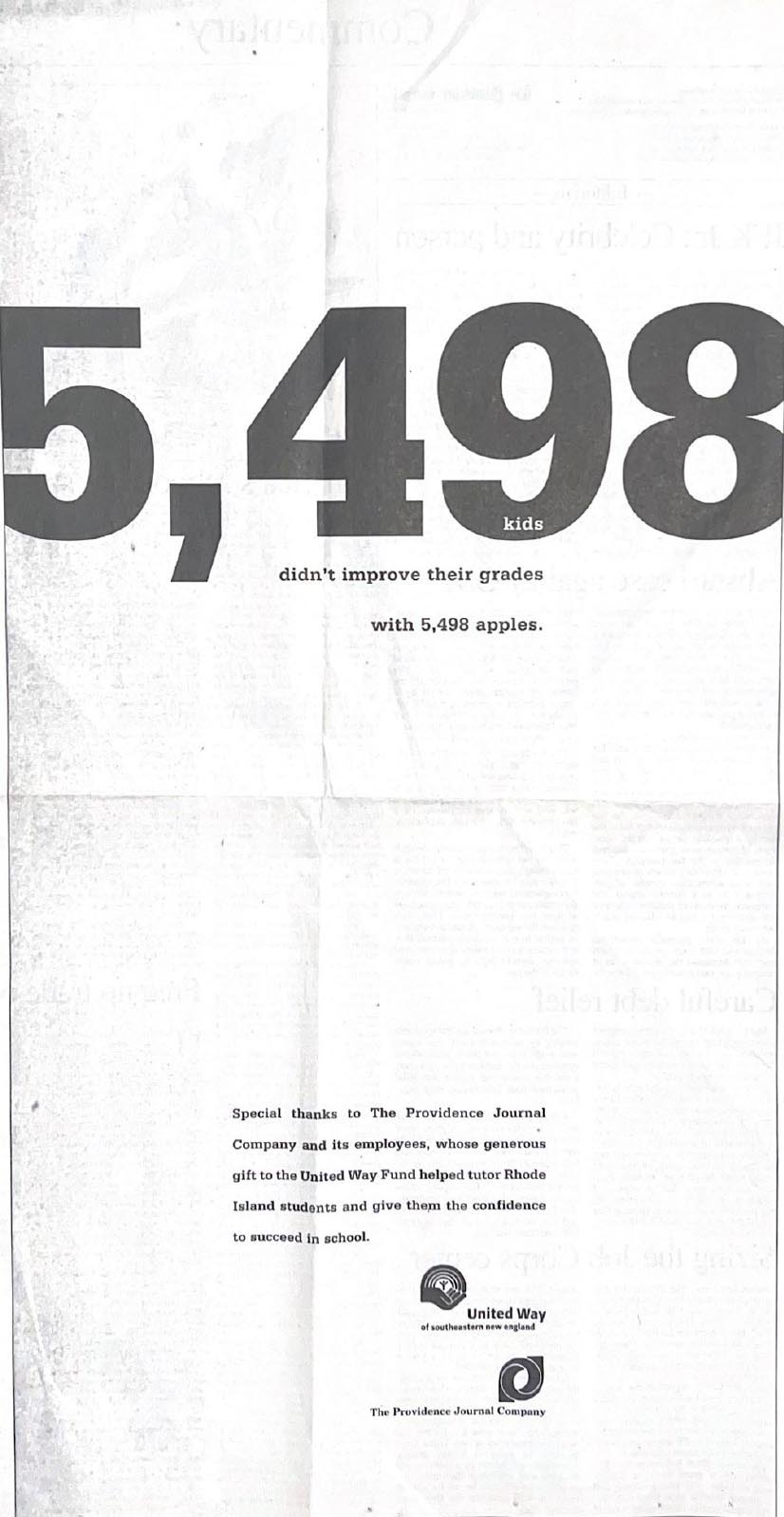 Slow dissolve to my years at a small shop with national clients in of all places, Amish Country. There’s Tom Monahan, meditating during a break. We had hired Tom to help us figure out where we might go as 30-person agency. The answer was surprising. Cut to Tom recommending us to the United Way of SE New England who was looking for a new giving campaign. UNWSENE turned out to be a great, appreciative client who insisted the United Way is too vague and people want to see the numbers, the results. Our campaign, 3 TV spots and 20 full page newspaper ads, upset some New Englanders (who objected by letter and always enclosed a check). Our client’s reaction? “You have to break a few eggs to make an omelette.” The work not only reversed a decline in giving, it actually increased it that year by 11 percent. As an agency we were proud to contribute to a great cause and equally proud that the work hauled in the award show hardware.
